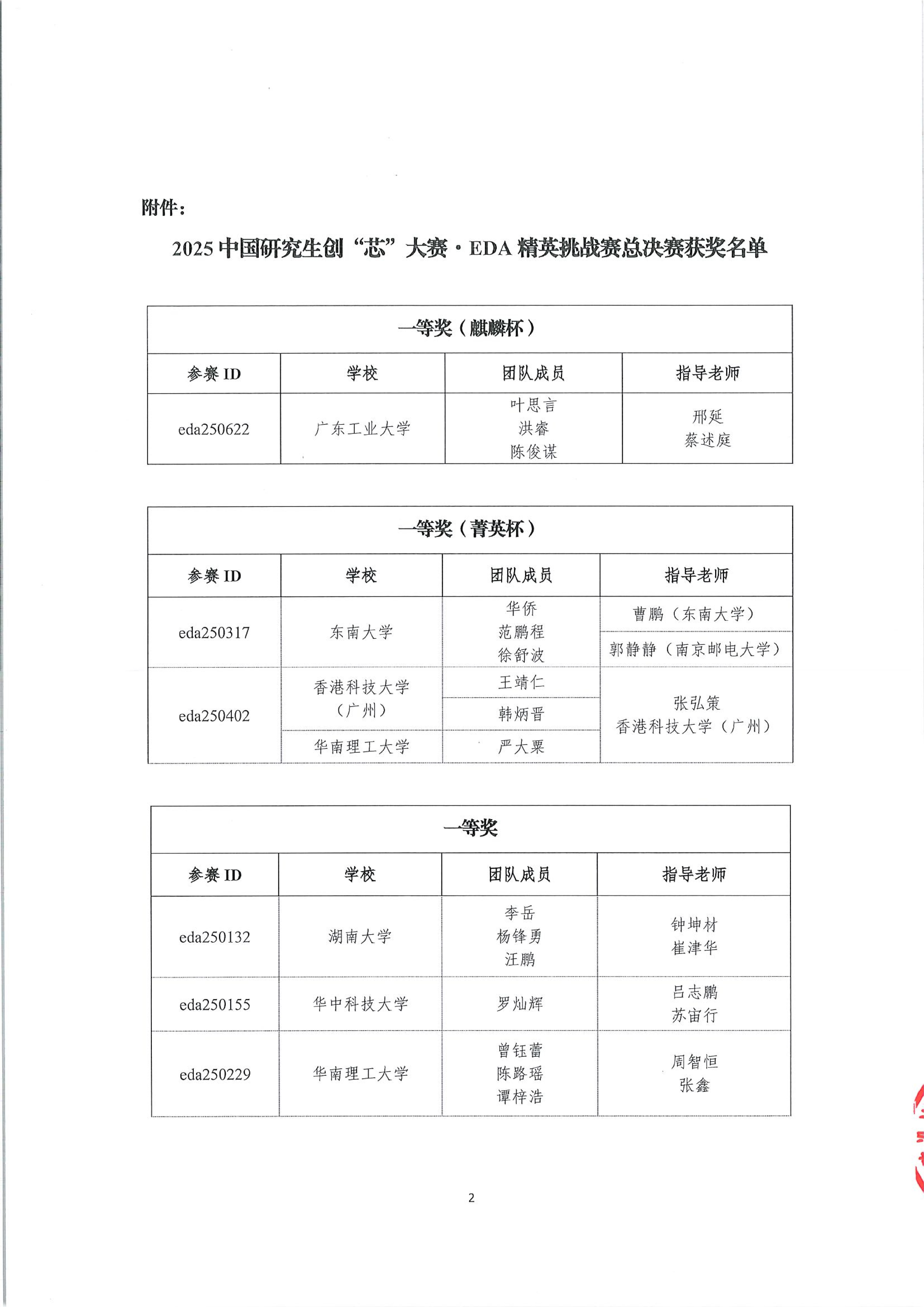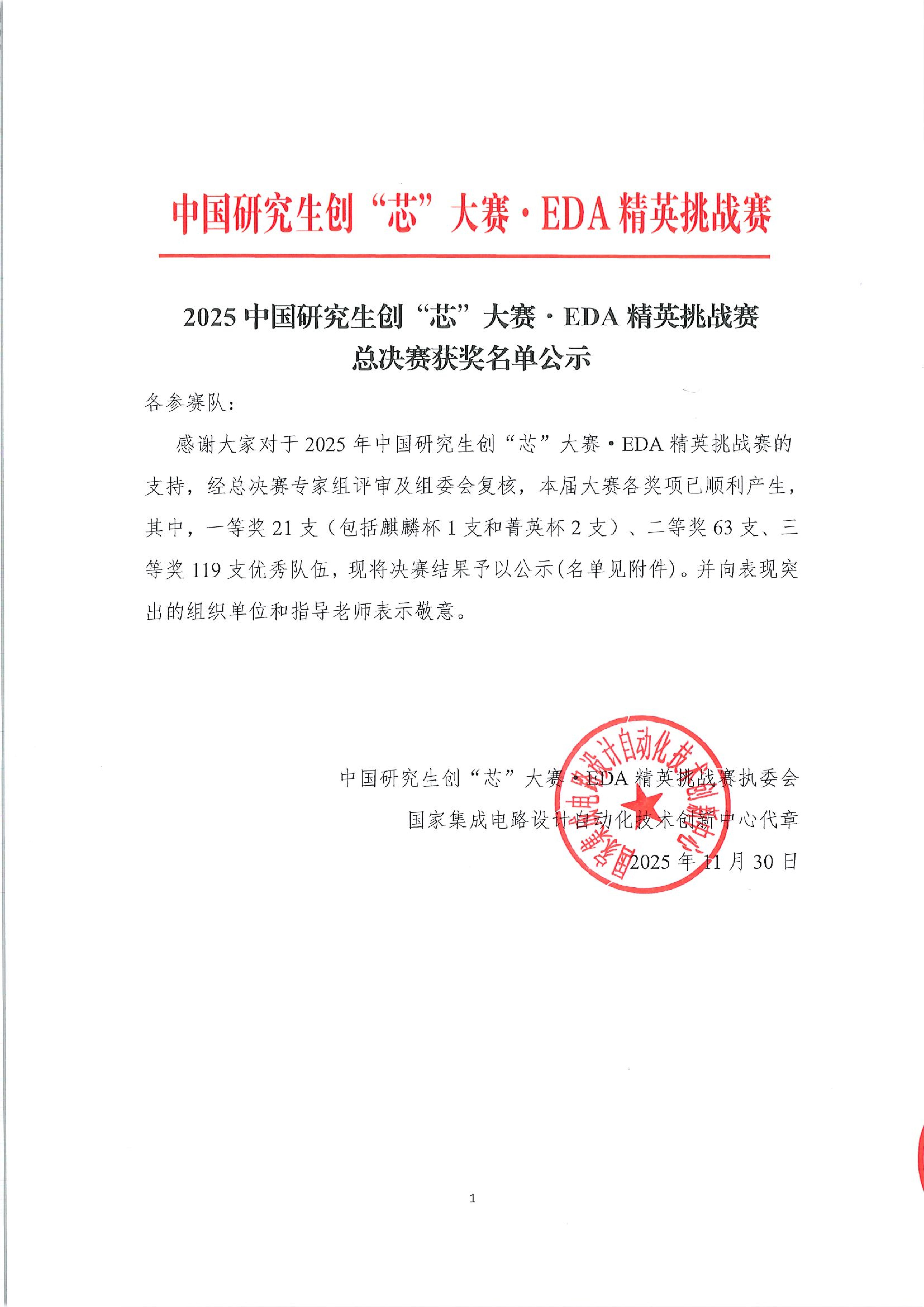 2025中国研究生创“芯”大赛·EDA精英挑战赛总决赛获奖名单公示