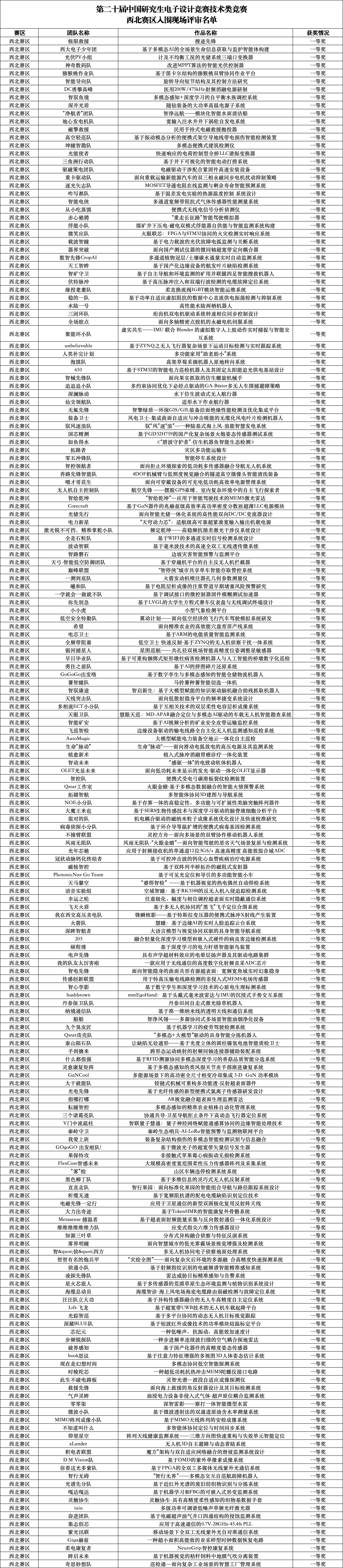 第二十届研电赛西北赛区会议评审结果如下: