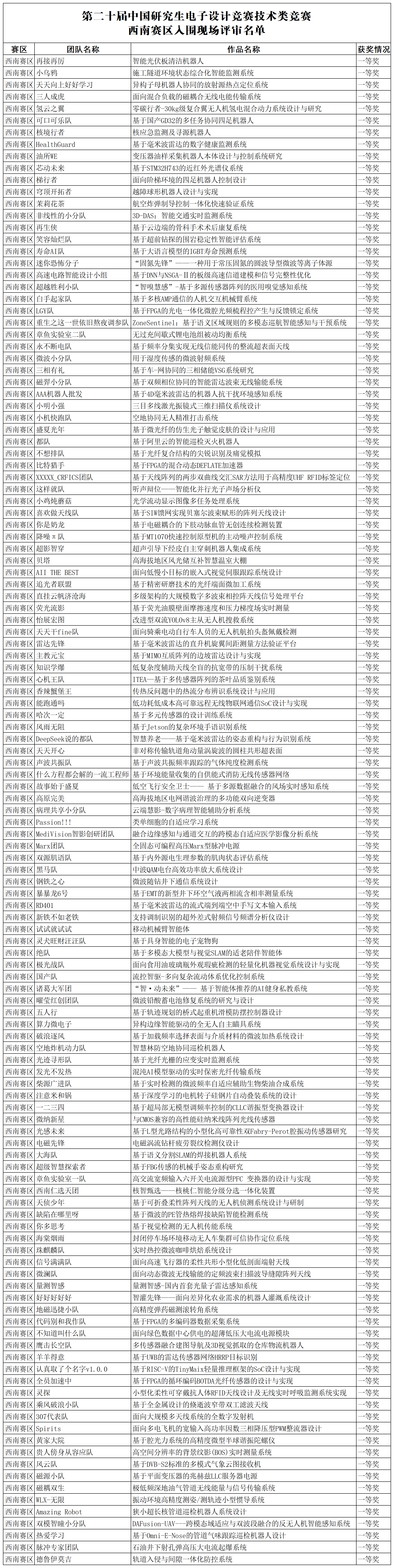 附件2:第二十届研电赛技术类竞赛西南赛区初赛获奖名单