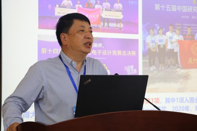 刘霆轩介绍了本届赛事的整体情况和华东赛区往年的参赛情况,剖析了往年各比赛存在的问题予以相应的建议,并着重强调了本届竞赛形式的变化以及各命题的要求。他希望华东地区高校充分发挥各校电子信息学科群资源优势,通过构建“真题真做、产教融合”的竞赛生态,为培养具有工程实践能力的拔尖创新人才打造高质量育人平台。