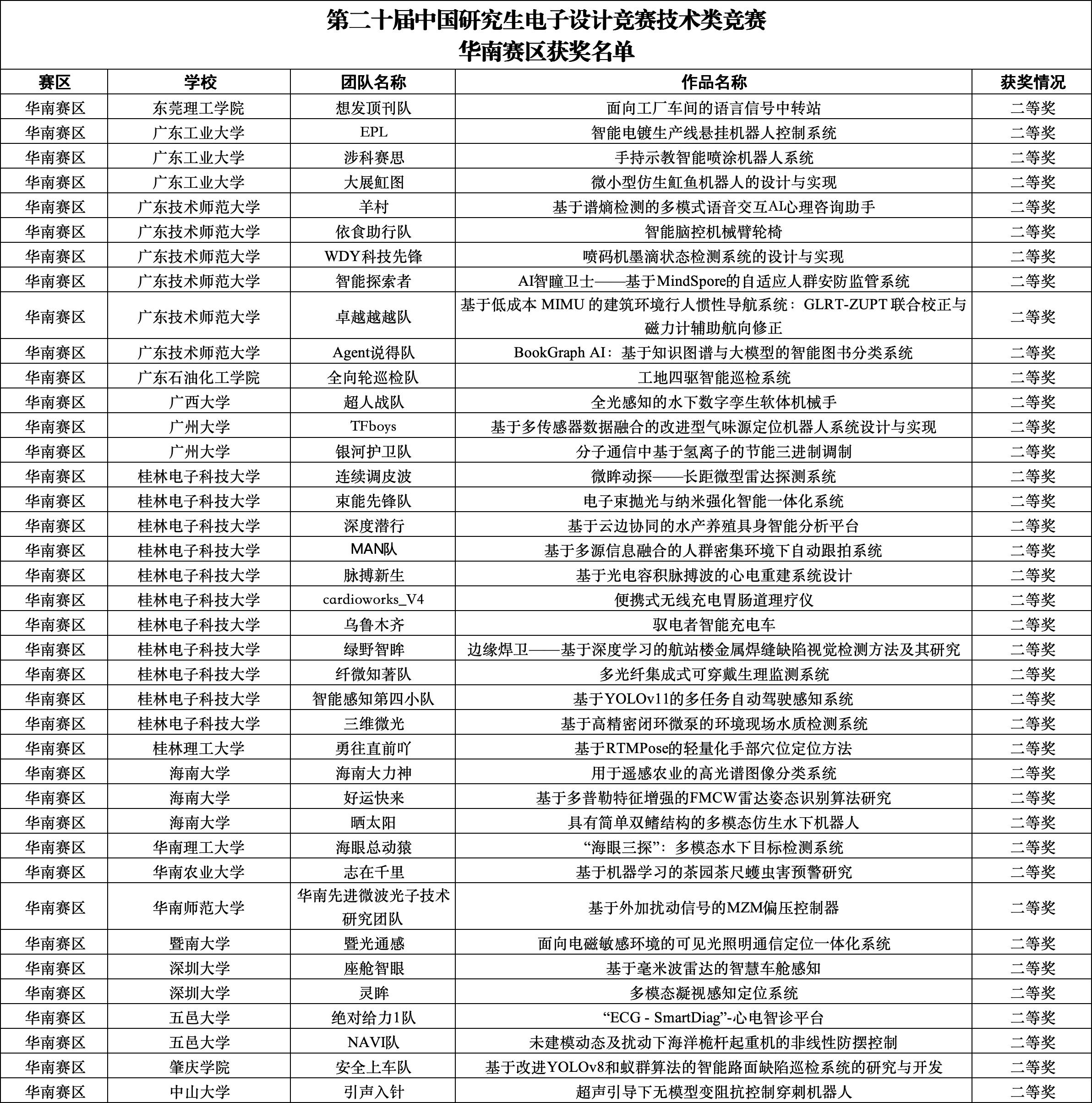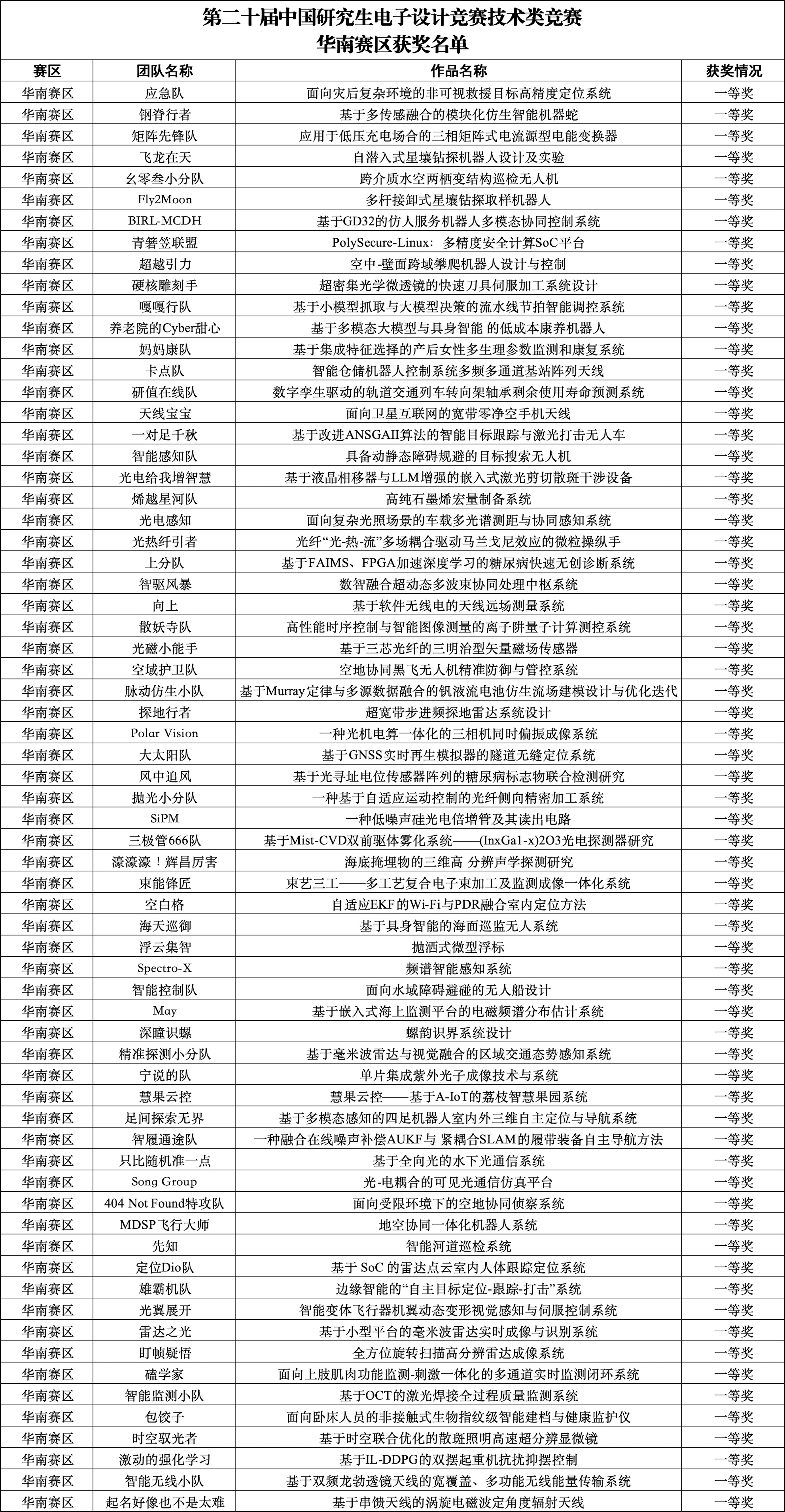 附件1:第二十届研电赛技术类竞赛华南赛区初赛获奖名单