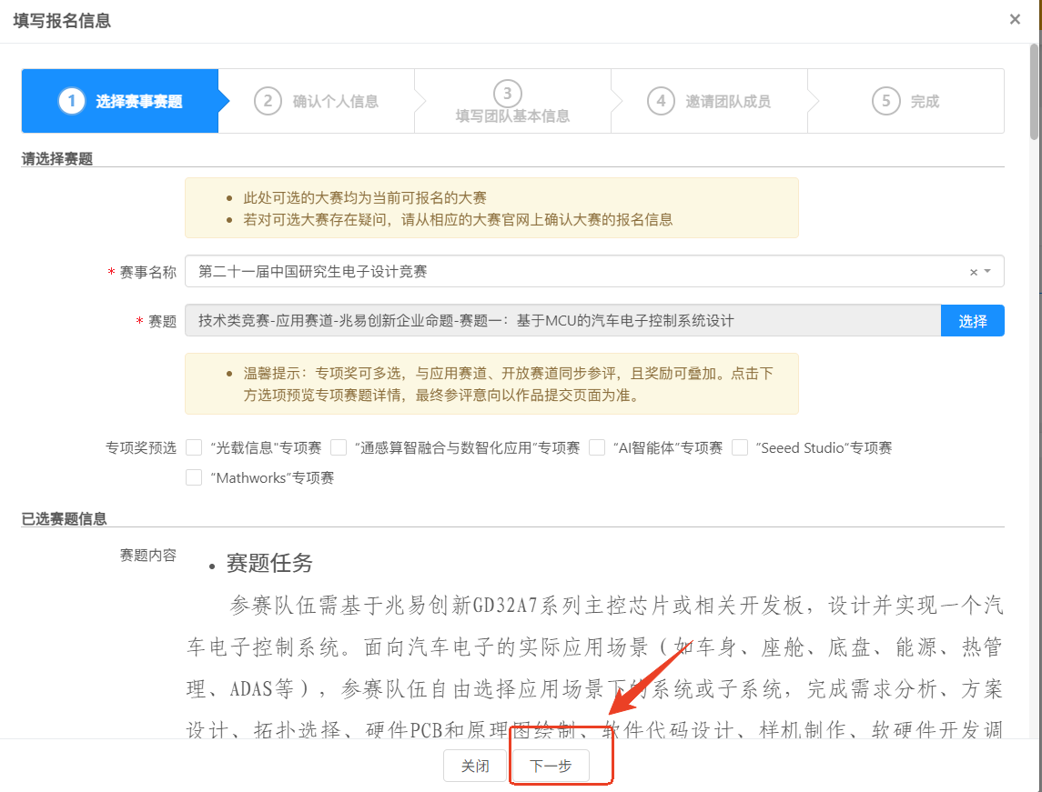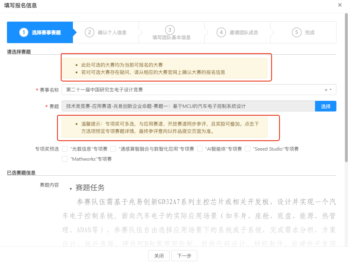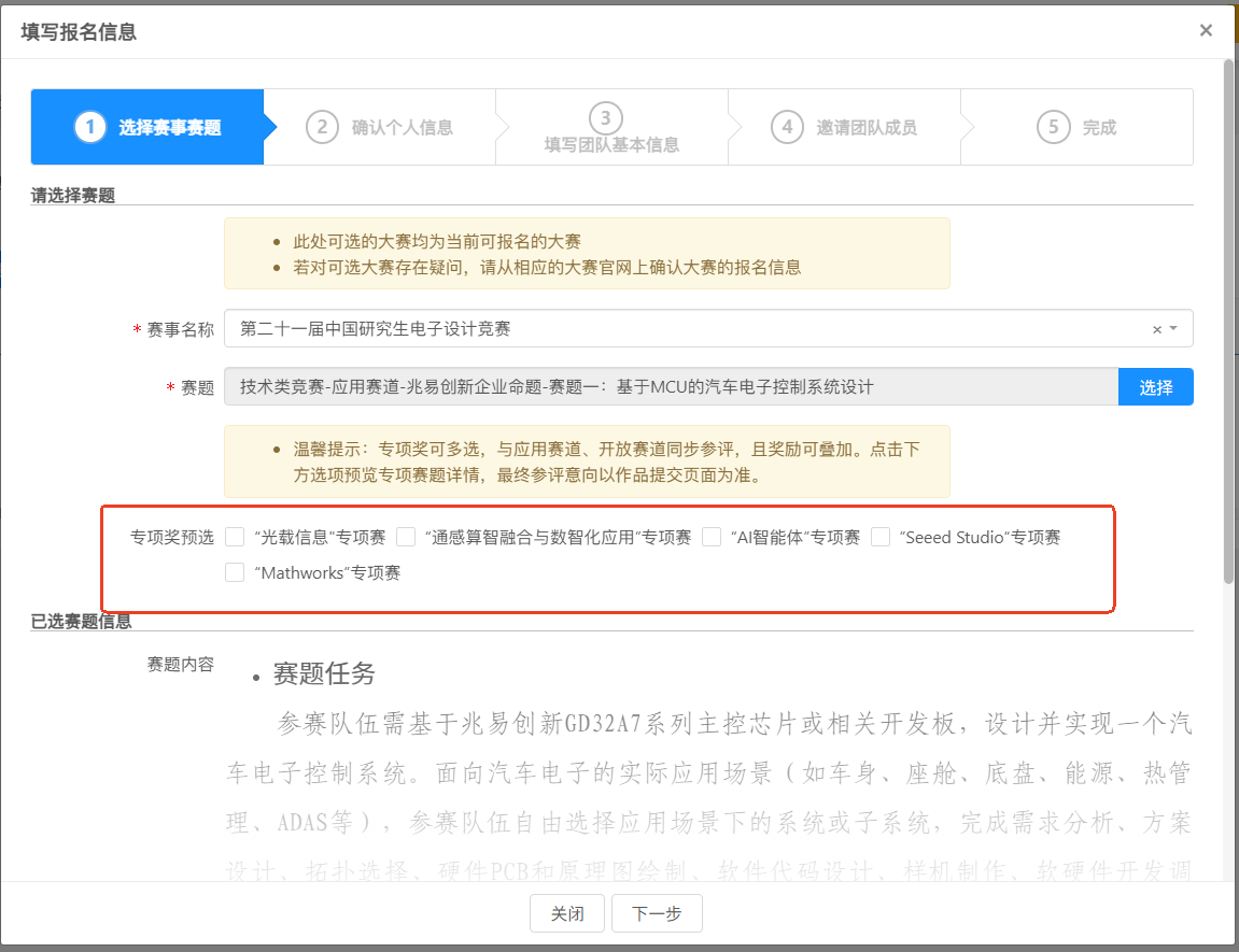 *此处点击专项奖预选框,可查看专项奖赛题说明。具体参评意向需在作品提交界面确认。(见本文第四部分其他赛项说明)