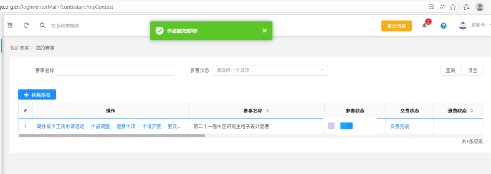 ※ 缴费成功后即可上传作品文档,作品提交成功后,报名结束。