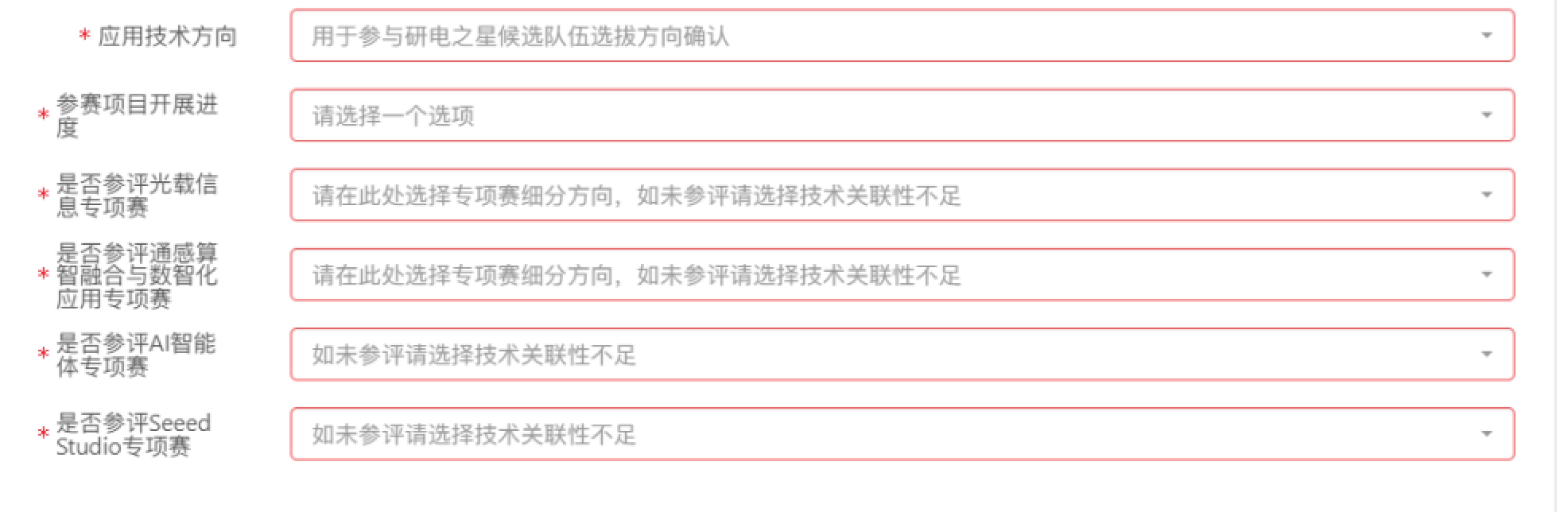 (1).应用赛道队伍选择相关应用技术方向,用于参与研电之星候选队伍选拔方向确认;