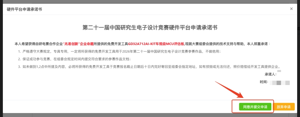 (6) 确认无误后点击“同意并提交申请”并等待企业审核。
