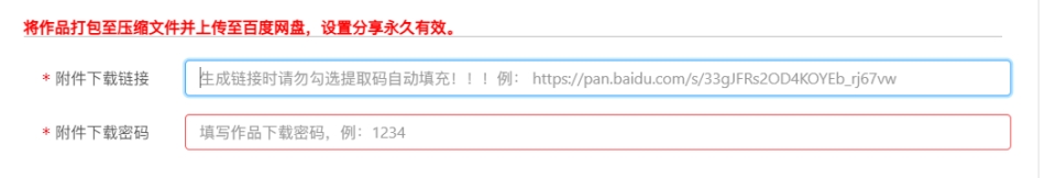 ※ 其他作品附件按要求提供后,统一压缩包,使用百度网盘上传。