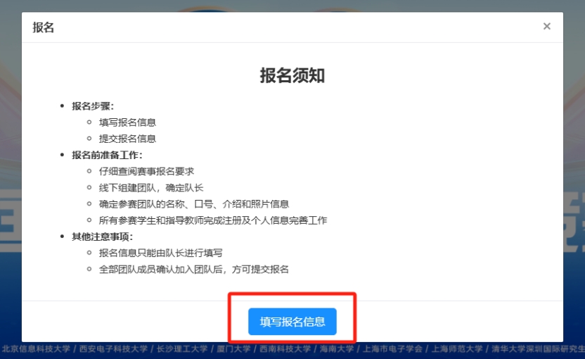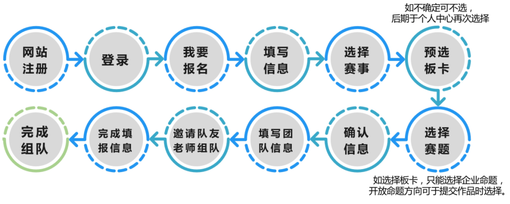 ※ 报名截止后,团队信息(含队员与指导老师顺序)、赛题、作品内容等均不能变更。