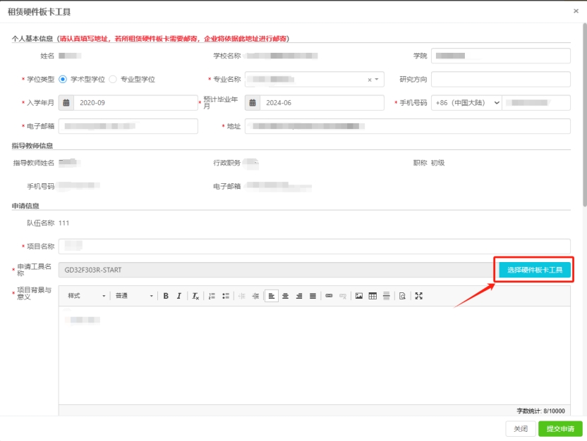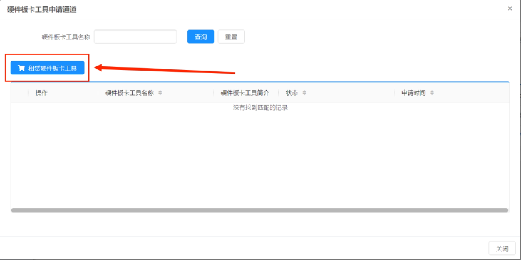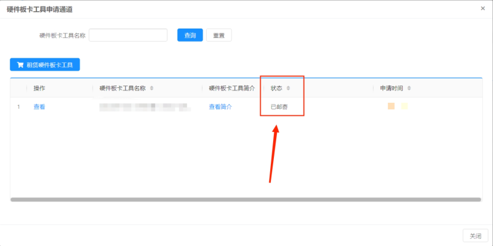 (1) 进入个人中心后,点击“硬件板卡工具申请通道” 。