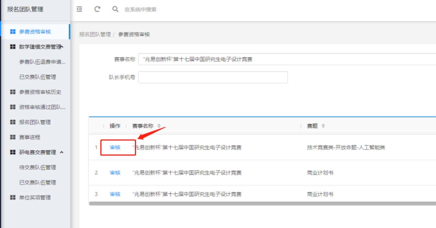 ※ 参赛团队信息可由学信网自动审核或由所在研究生培养单位审核。