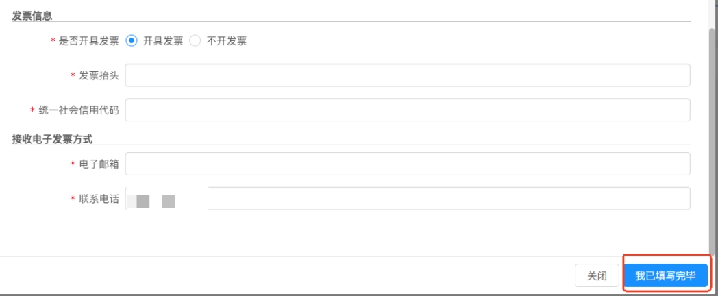 ※ 如需开具发票,请核实发票抬头与统一社会信用代码,以便报销。请务必仔细核对后填写,确保填写无误。