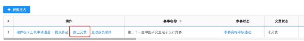 1.在【个人中心】【我的赛事】中,点击【线上缴费】。