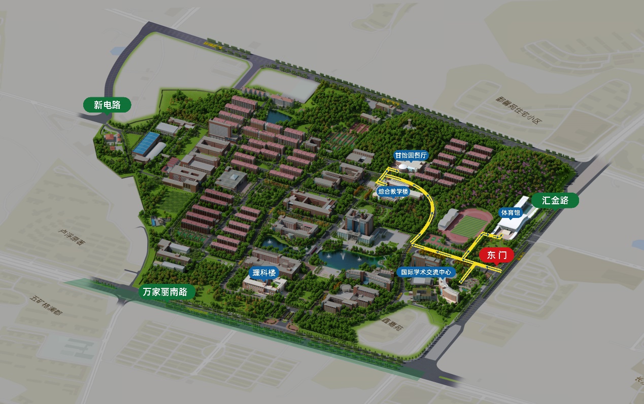 经长潭高速、京港澳高速、长常高速转长沙绕城高速到汽车南站出口下,然后沿 107 国道(老韶山路)东行至长沙汽车南站,再南行约 3 公里到长沙理工大学云塘校区东门。或者在京珠高速李家塘收费站右转至绕城高速,在万家丽南路口下,沿万家丽南路南行约 4 公里到达长沙理工大学云塘校区。参赛人员车辆参赛期间凭参赛证免费出入。