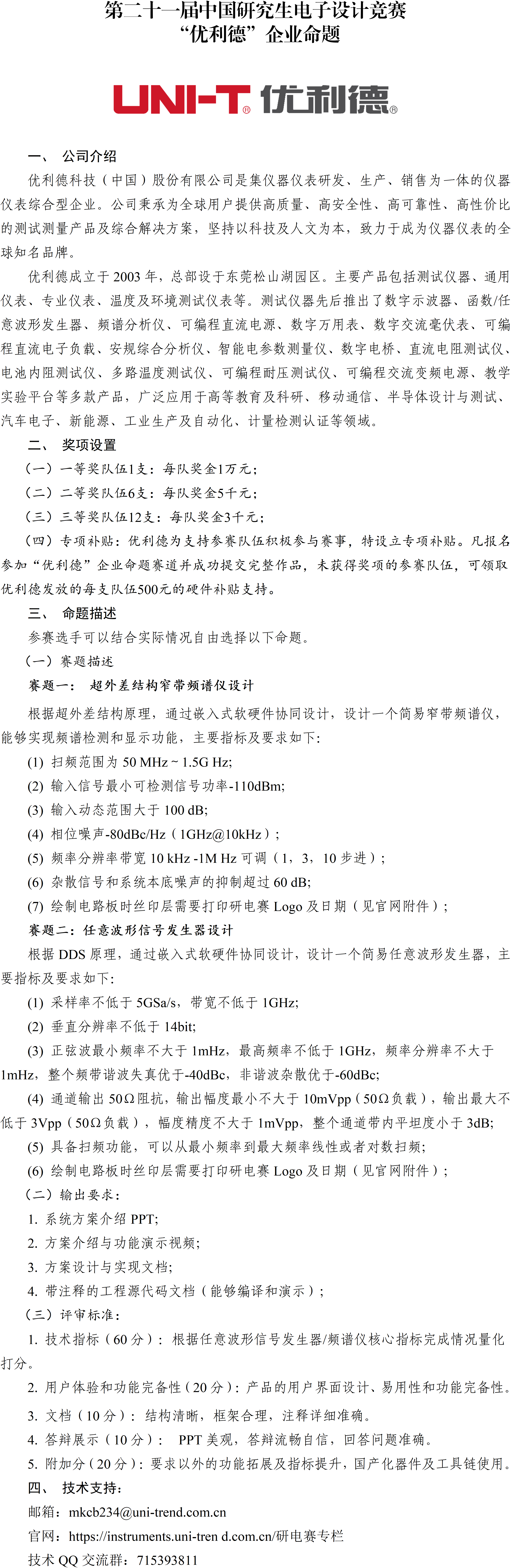 第二十一届中国研究生电子设计竞赛“优利德”企业命题预发布