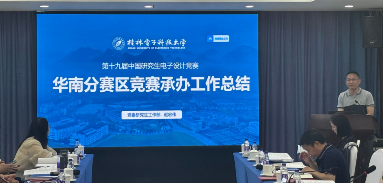 随后,第十九届研电赛华南赛区承办单位桂林电子科技大学研究生工作部副部长赵宏伟总结了上一届研电赛华南赛区的承办情况及组织工作经验,分享了其在赛事组织、团队管理、资源协调等方面的宝贵经验。
